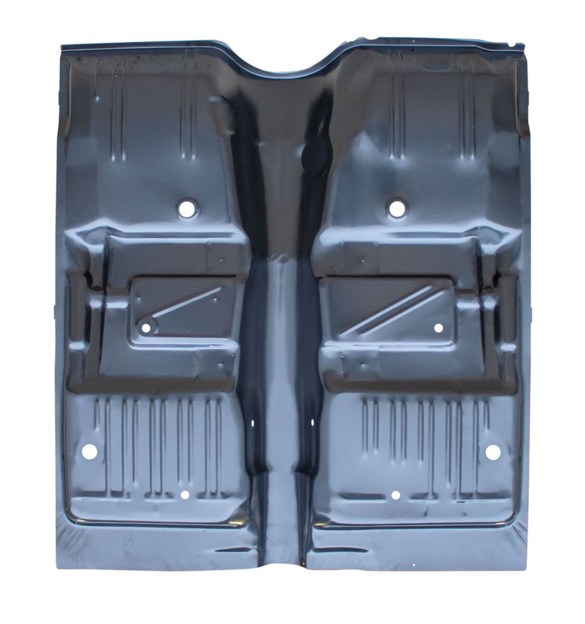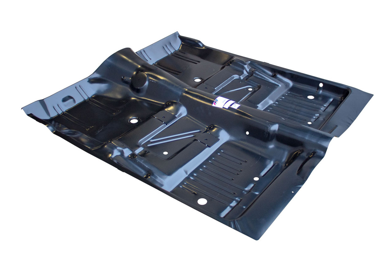 oe style coverage like original. mates to all adjacent panels with oe dimensions. comes with fasteners and brackets for speedometer cable, emergency brake cable, seat belts and rear seat retainers. you will also need rear floor pans (foot well area) if you need complete coverage for the entire front floor. floor pans for 75 and 76 models have slight changes in shape to a accommodate catalytic convertors. our pan will fit these models but does not allow for convertor use without modification.