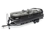 When that time arises, settle into the helm and bring 250 horses to life and experience captivating performance complemented by impeccable control. Three 23-foot pontoon logs ensure rock solid rigidity and stability for any pursuit. An intuitive console delivers control and insight into everything on board from lighting, sound, the powered Bimini, and more. Helm seating features self-leveling arms, a swiveling base and reclines so you can take it all in, all day.
