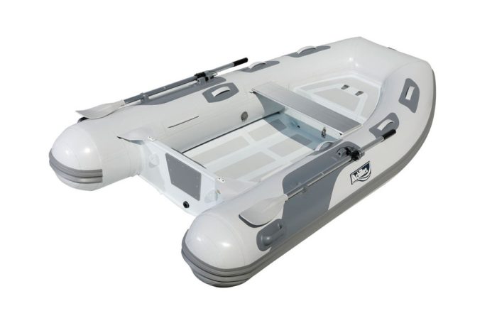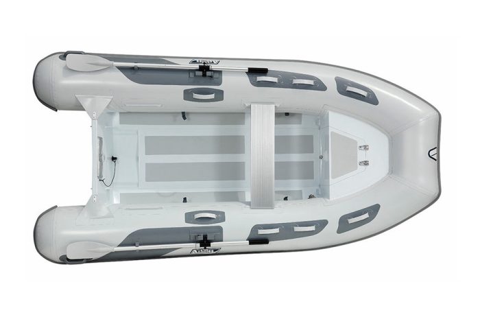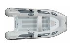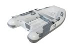 Achilles HB-270AX inflatable boat is the smallest of the deluxe aluminum RIB series. The 270 model offers a full-length deck liner, providing a nice flat interior space, along with a roomy bow locker. This is the best choice for a full RIB that is very durable for beach landings and launchings. Capable of getting on a plane with 2, maybe 3 persons and the help of a 10 horsepower outboard, the tender is maxed out with either 4 persons or 990 pounds.