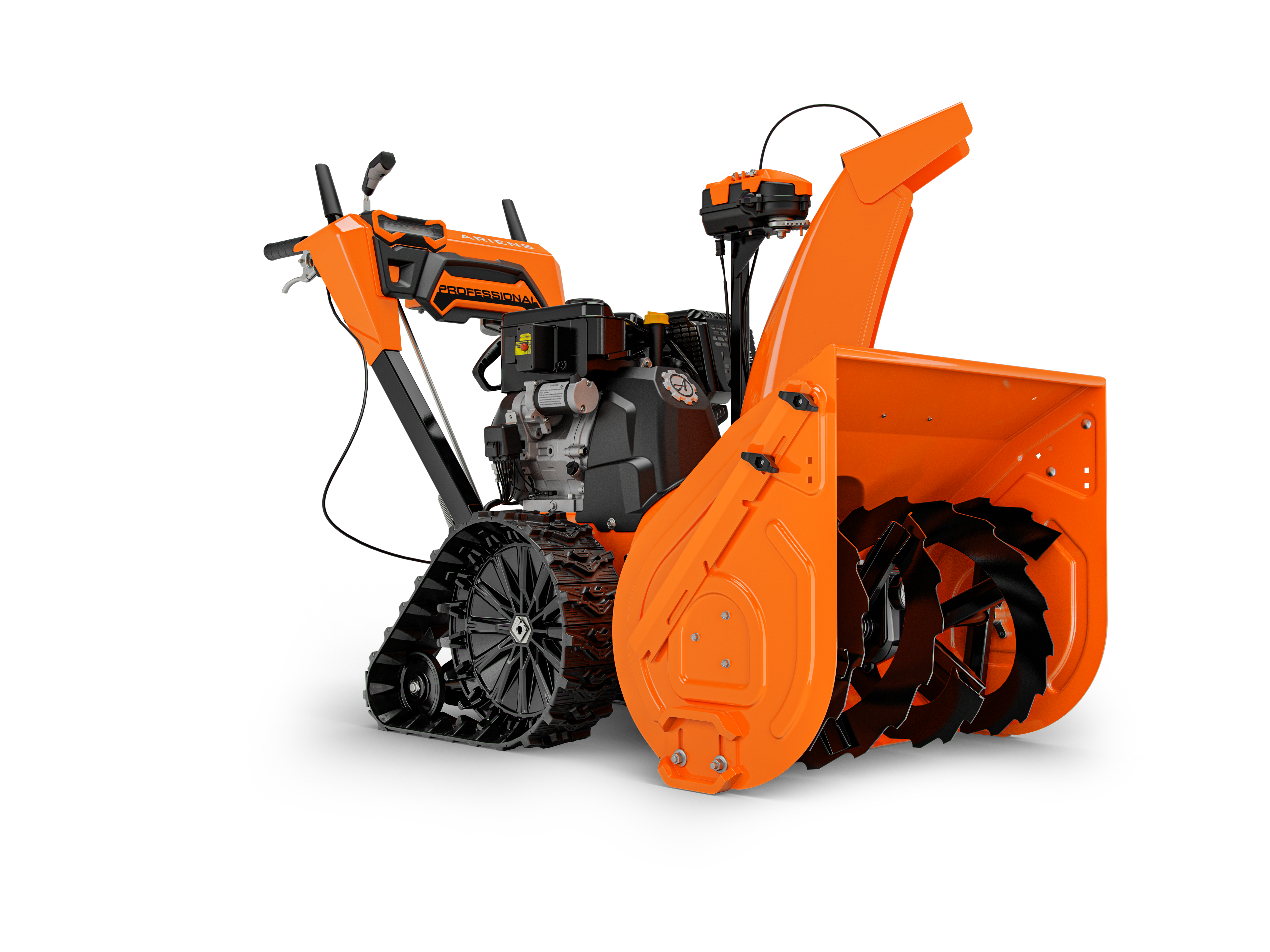 The newly redesigned Ariens Professional 28 Rapidtrak Hydrostatic snow blower features Rapidtrak technology with three adjustable track positions: track mode, wheel mode and dig-in mode. Heated handgrips and halogen headlights make clearing snow more comfortable and easier.