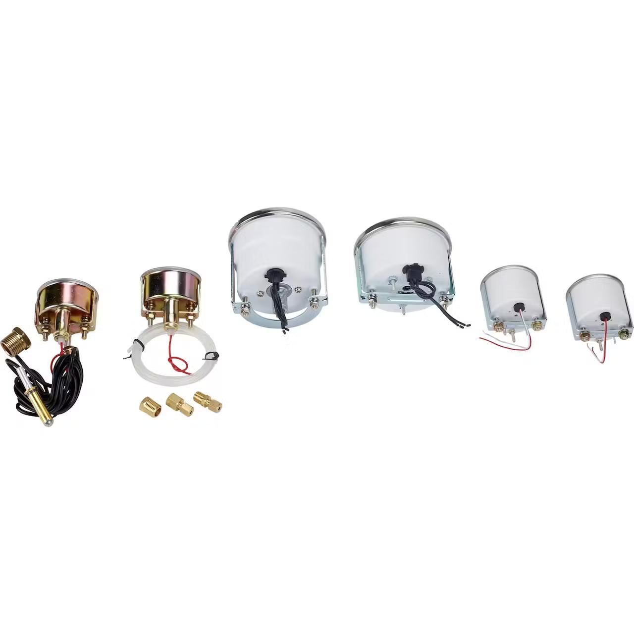 Kit includes fuel level sender (240E/33F), oil pressure sender, water temperature sender, 2-wire hall-effect speed sender that is compatible with GM/Chrysler applications (7/8″ – 18THD), sending unit adapters (1/4″, 3/8″, and 1/2″ NPT adapters), mounting hardware, and detailed instructions for installation.