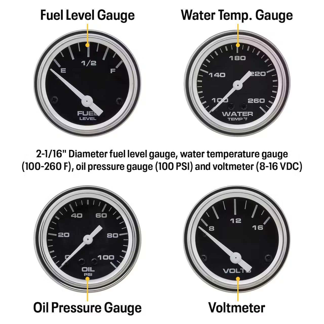 New Vintage USA 3725701 Woodward Series Gauges, 3 in 1, Black