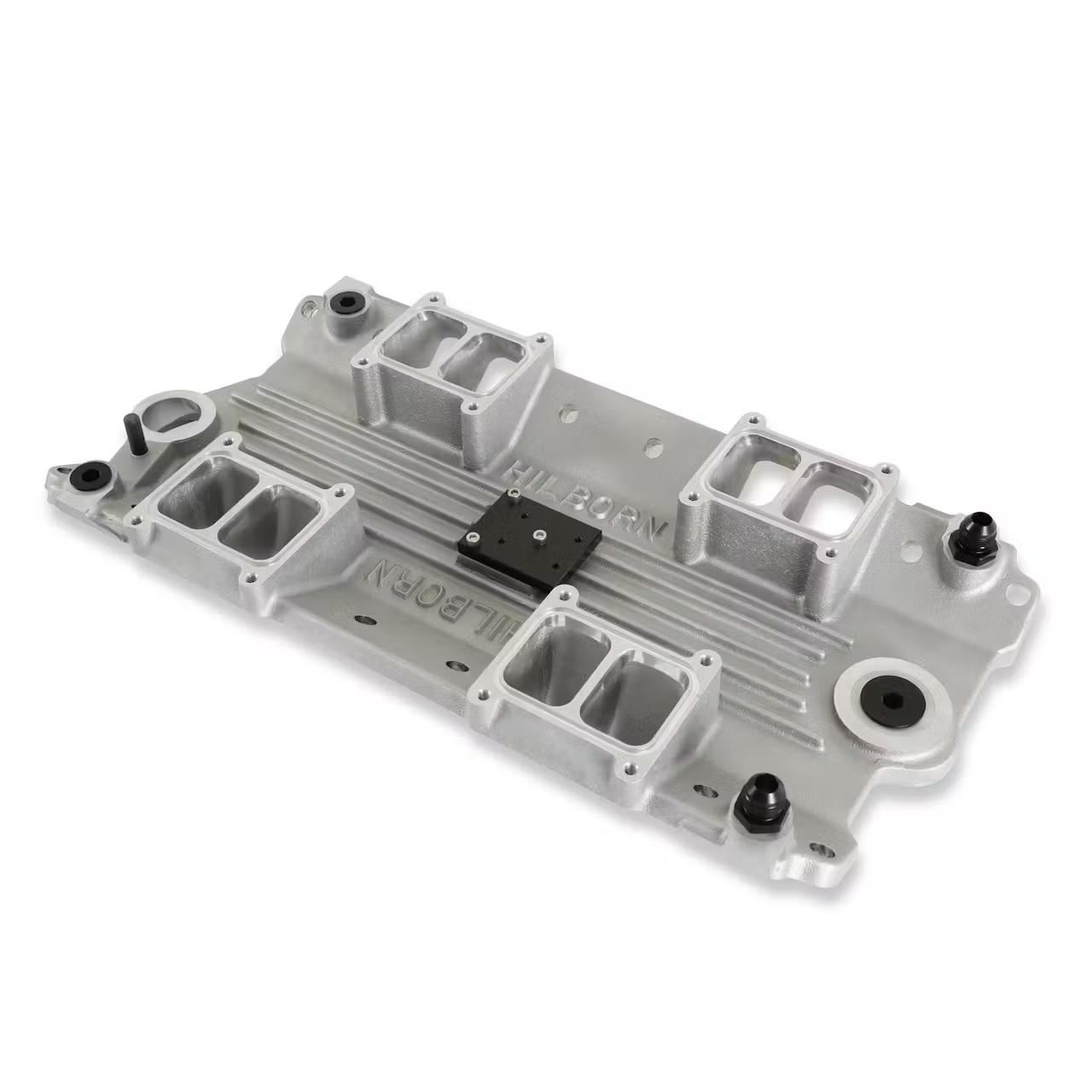 The Hilborn RAW “Race-And-Win” Injector is the classic racing unit for the standard Gen 1 Small Block Chevy. These base intake manifolds for the SBC RAW EFI-R Kits fit SBC engines with 1955-86 262-400 or 1987-91 L98 Corvette-type cylinder heads providing mounting for both RAW Hilborn mechanical and electronic stack fuel injection. The Hilborn EFI-R injector manifold kits combine the technology of Electronic Fuel Injection with the racing-born performance and aggressive looks of Individual-Runner engine induction.