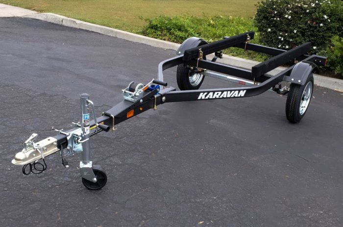 WCE-1500-46-L Karavan’s single watercraft trailers available in powder coated textured black. Tubular frame with adjustable winch and bunks systems allow you to make necessary adjustments to the trailer for a custom fit to your watercraft.