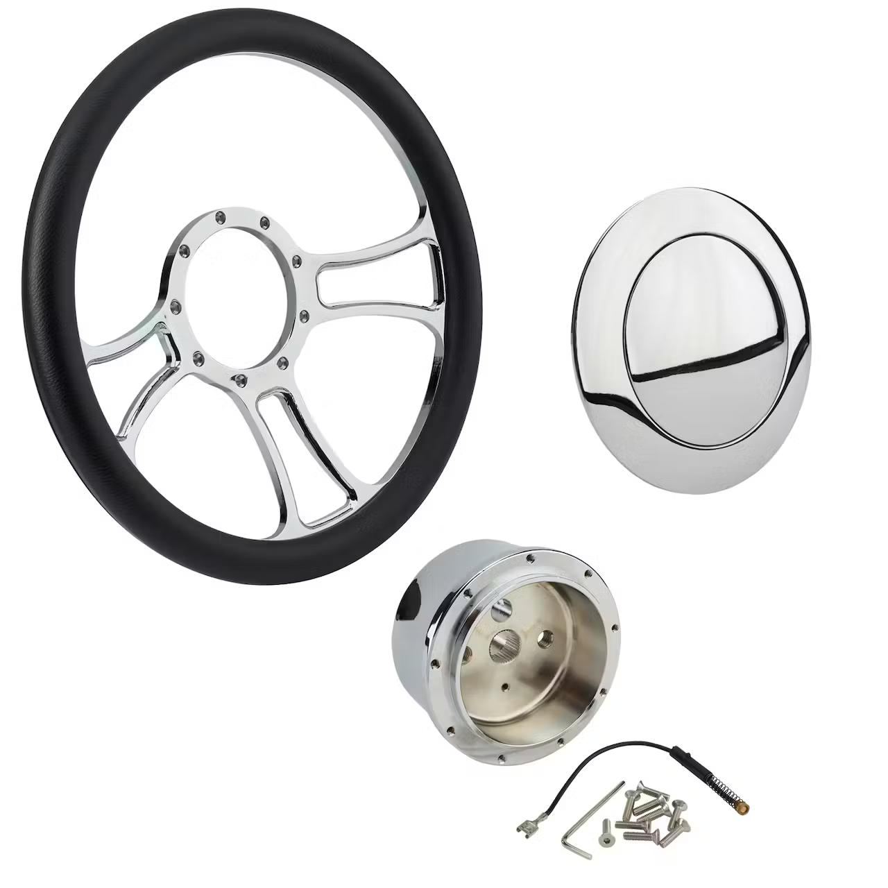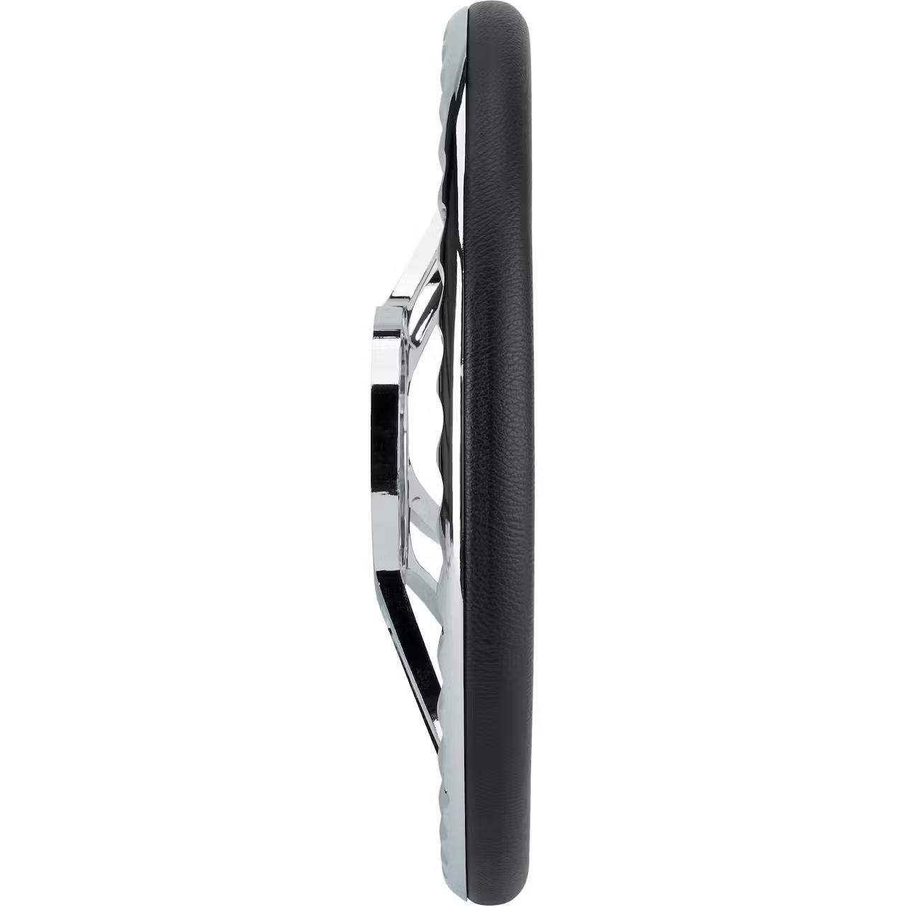 Safety is always in the forefront of all MPI products. The inner structure has been engineered to deform under elevated impacts, absorbing the load and reducing the effect on the drivers upper body, offering an engineered safety advantage. The inner foam injection has been developed to have the highest vibration absorption rate in the industry. The special oval shaped grip makes holding the wheel a natural feel for the driver. The new aluminum D shaped structure features a unibody with no horn button for increase rigidity and durability and a flat bottom for extra leg room and easy exit adding a sporty look to the unit.