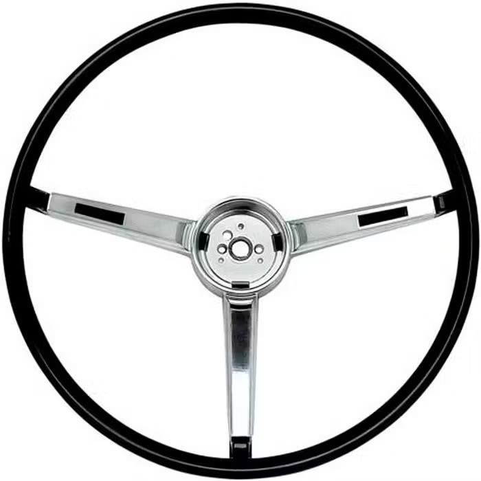 Reproduction of the original deluxe steering wheel kit designed for use on 1967 Nova Super Sport models. This reproduction steering wheel is manufactured to exact factory specifications, injection-molded for quality and authenticity and includes the OE style brushed aluminum steering shroud for complete authenticity. This complete steering wheel kit includes the OE style steering wheel, horn center cap, horn contacts, horn buttons, and horn cap installation kit.