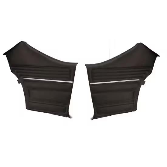 These 1968 Chevelle pre-assembled front door panels are ready to install out of the box. Unlike the unassembled panels where installing your existing top rail and weatherstripping is necessary, the work is already done when you open the box. These pre-assembled door panels come with a strong attached top rail, attached windowfelt brand weatherstripping, and door lock knob ferrules. These door panels are an exact reproduction of the originals. The eye catching pleats are formed using a dielectric process for a long lasting look. Sold as a pair.