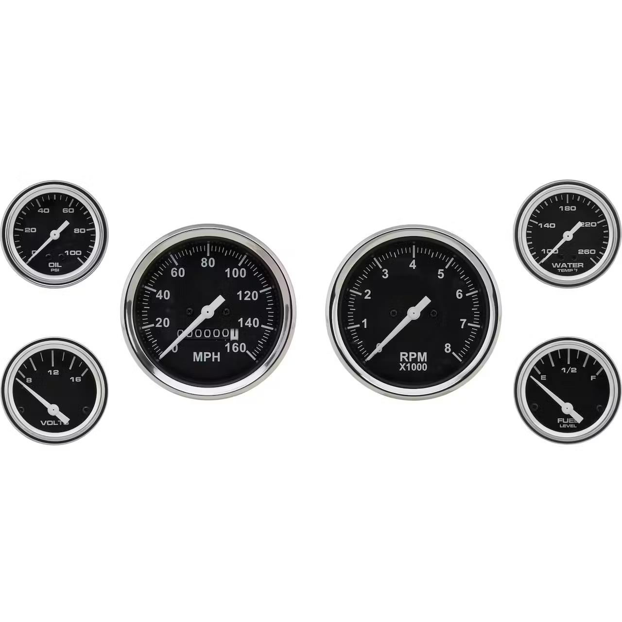 Full set of vehicle gauges for your muscle car, classic truck, or hot rod project