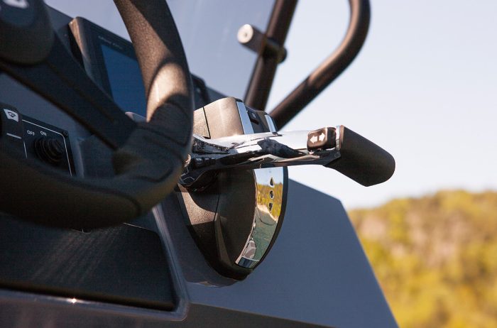 Top mounted binnacle remote with keyswitch and harness, Command Link (6YC) LED display gauge, water/fuel separator, mechanical control cables